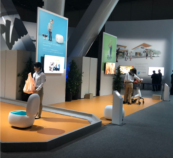 展示事務局に参画し、全体展示やステージ映像にDEI視点を盛り込んだ。テーマ展示の1つDIVERSE COMMUNITYのディレクションを担当し、その中で技術者と作成したポーターロボットは話題となり、フォーラム終了後もパナソニックセンターで活用された。技術展示では中心メンバーとして、デジタライゼーションが人にどのような価値をもたらすかをテーマにまとめあげた。