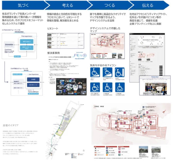 車いすユーザーの社員から「出張に行きたいけれど必要な情報がない」と言われたのをきっかけに、目的地に辿り着くための情報を得られるようにしたマップ。障害のある社員と有志の社員が一緒に現場を見ながら制作した。段差の有無だけでなく、目的地までの障壁を可視化することで、身体特性や体調に合わせてルートを選べるよう工夫した。